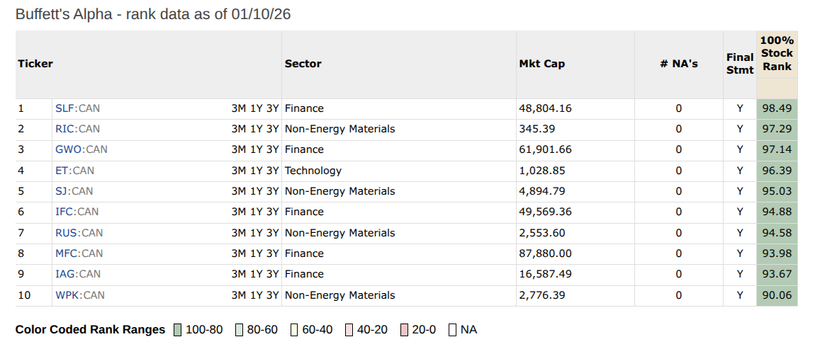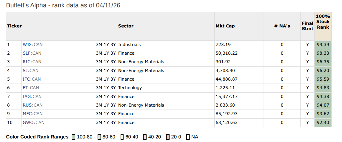 The universe for this model are the stocks in TSX only – so no Venture Exchange companies.